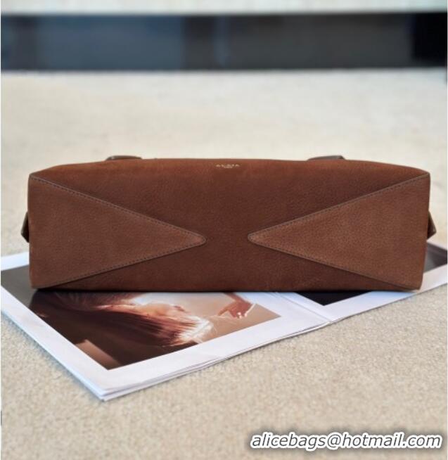 Best Price Alaia Le Tecket Medium Long Shoulder bag in Grained Nubuck 8815M Caramel Brown 2026