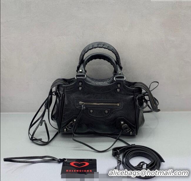 Well Crafted Balenciaga Le City Top Handle Bowling Bag in Lambskin Leather 0926 Black 2025