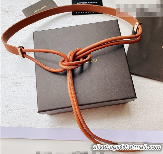 Luxury Cheap Bottega Veneta Calfskin Leather Belt 1cm with Knot Buckle 0725 Tan Brown 2025