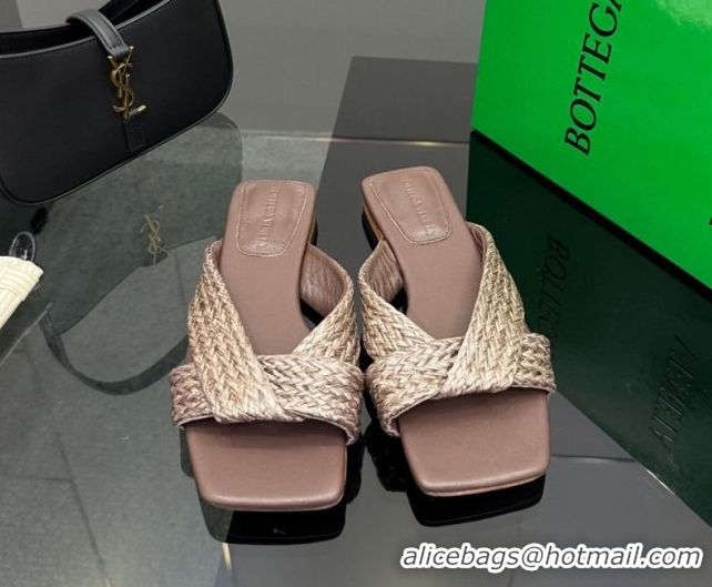 Low Cost Bottega Veneta Riva Flat Slides Sandal in Braided Straw 861494 Brown 2026