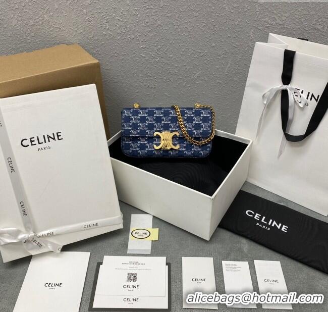 Original Cheap Celine Chain Shoulder Bag Claude in Denim with Triomphe All-Over 197992 Blue/Gold 2024 Top