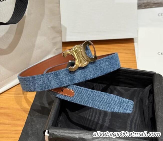 Top Quality Celine Denim and Leather Belt 2.5cm with Triomphe Buckle CE0911099 Blue/Brown/Gold 2025