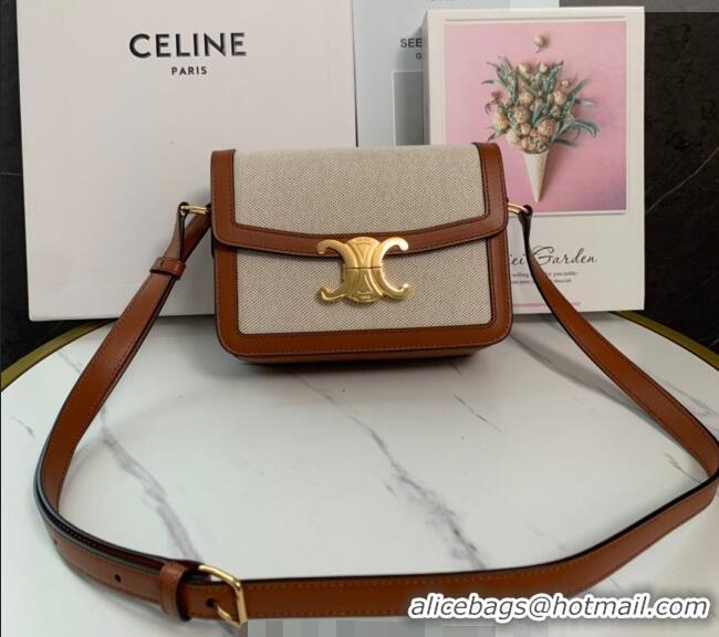 Best Price Celine Teen Triomphe Mini Bag in Linen Canvas and Calfskin Leather 188423 Beige 2026