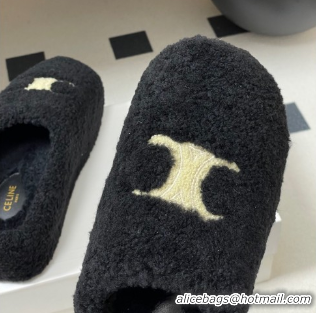Luxurious Celine Triomphe Wool Platform Slides Sandal Black CE102406 1024071