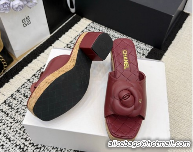 Best Price Chanel Calfskin Leather Heel Slides Sandal with Camellia CH030616 Burgundy 2026