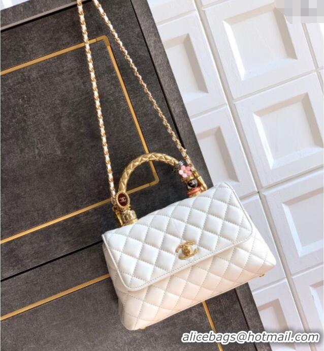 > Chanel Handbag > Chanel 2025 Bags > New Cheap Chanel Calfskin Leather Small Flap Bag with Top Handle and Charm CH112701 White 2025
