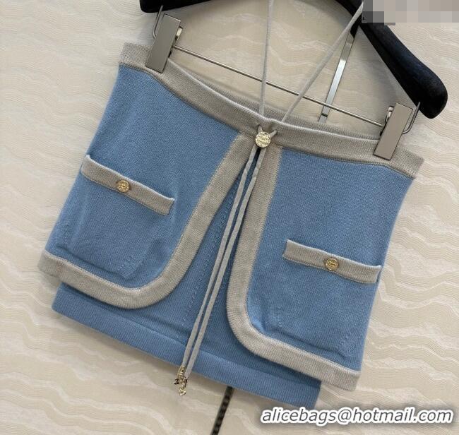 > Clothes Online > Chanel Clothes > Unique Grade Chanel Cashmere Knit Short Vest 0716 Blue 2025