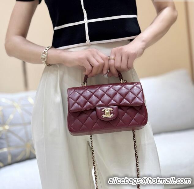 Best Price Chanel Coco Lambskin Mini Flap Bag with Top Handle AS2431 Burgundy 2025 Top Quality