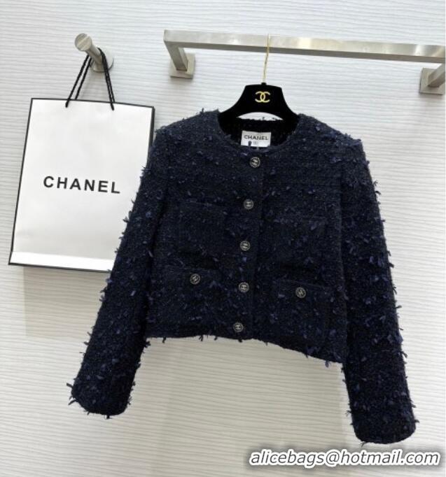 > Clothes Online > Chanel Clothes > Best Price Chanel Fringe Tweed Jacket CH91309 Blue 2025