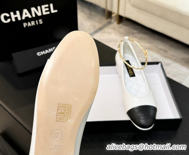 Sumptuous Chanel Lambskin Leather Ballet Flats with Logo Loop G46932 White 2026