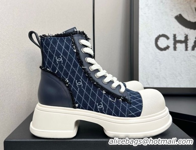 Best Price Chanel Quilted Denim and Fringe High Top Platform Sneakers Dark Blue 2025 CH110108