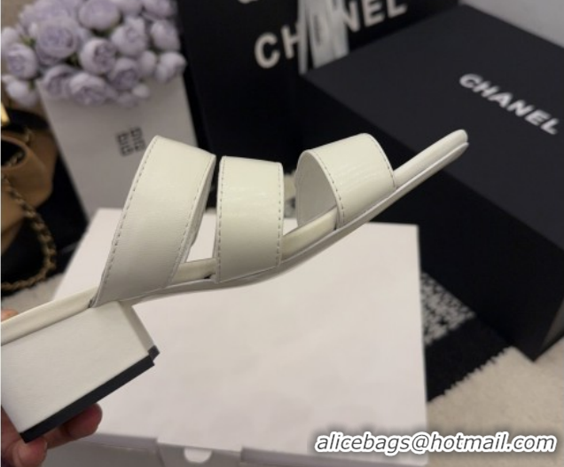 Best Price Chanel Shiny Calfskin Leather Heel Slides Sandal 4cm with Button Strap G46798 White 2026