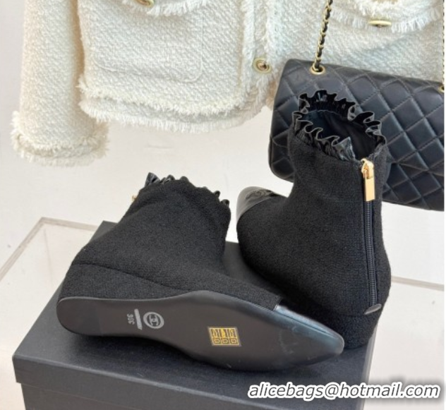 Purchase Chanel Tweed Wedge Ankle Boots Black 2025 CH110410 1104052