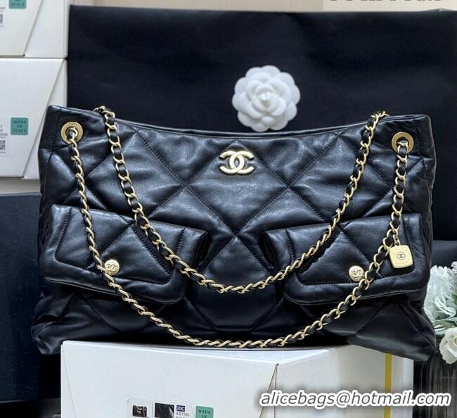 > Chanel Handbag > Chanel 2026 Bags > Famous Brand Chanel Shiny Lambskin Shopping Bag with Pockets Black 2025 AS5740 Top Quality