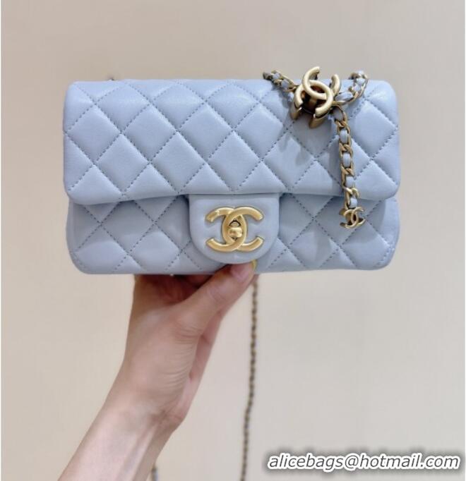 Your Position: Home > Chanel Handbag > Chanel 2025 Bags > Best Price Chanel Shiny Lambskin Mini Flap Bag with CC Chain AS5759 Light Blue 2025 Top Quality