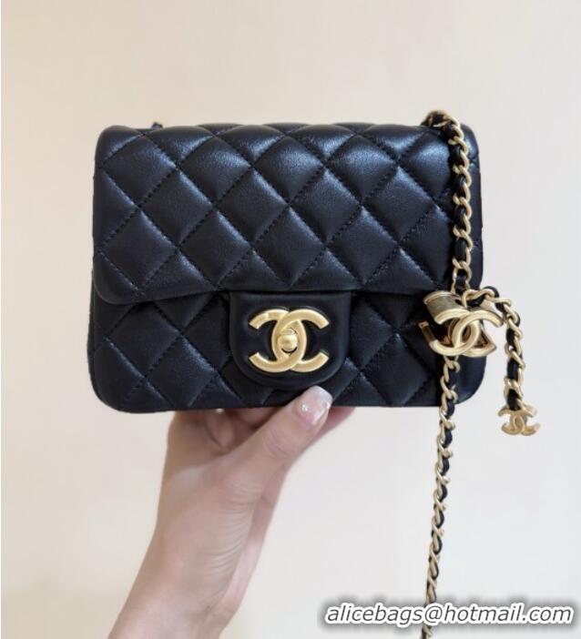Best Price Chanel Shiny Lambskin Mini Square Flap Bag with CC Chain AS5758 Black 2025 Top Quality
