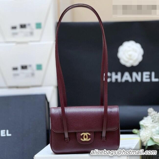Inexpensive Chanel Grained Shiny Calfskin Clutch with Leather Strap AP5068 Burgundy 2026 Top Quality