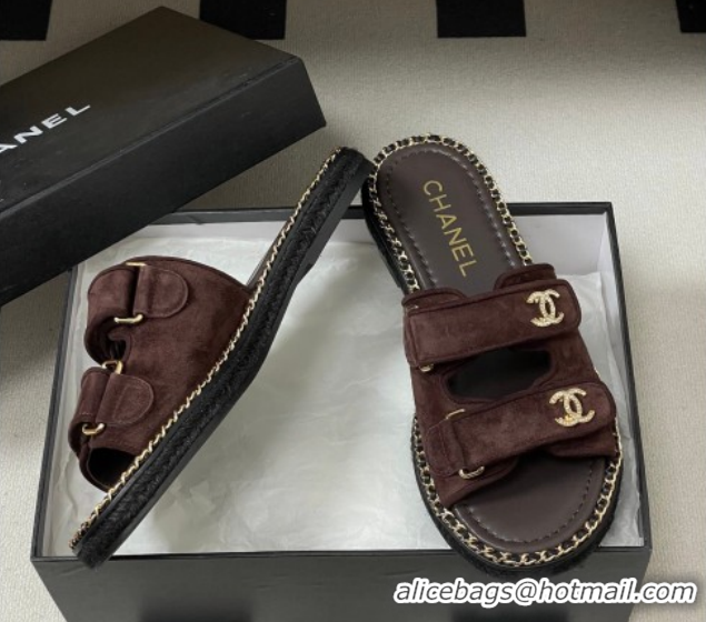 Best Price Chanel Suede Flat Slides Sandal with Strass, Chain and Strap CH030610 Dark Brown 2026