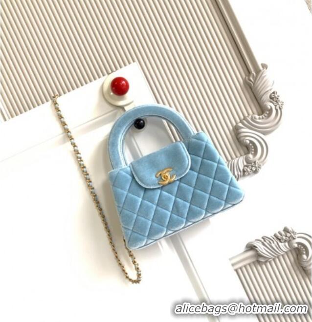 Best Price Chanel Velvet Mini Kelly Shopping Bag AS4416 Light Blue 2025