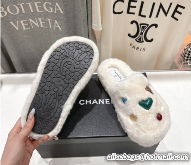 Best Price Chanel Wool and Charm Mules White 2025 CH110310 1103099