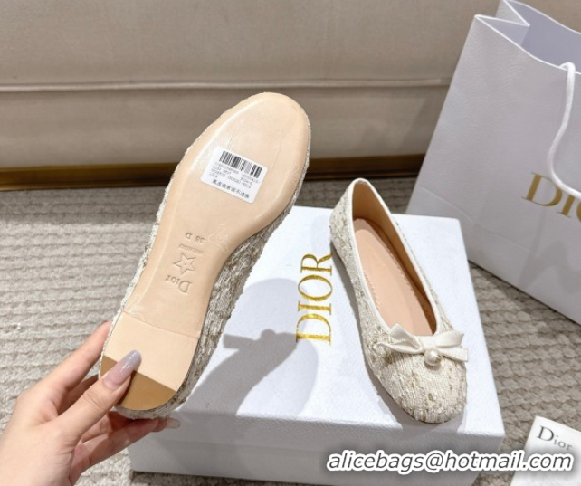 Your Position: Home > Shoes Plaza > Chrisitan Dior Shoes > Buy Luxury Dior Ballet Flats in Quilted Cannage Tweed with Pearl Bow Beige 0822012