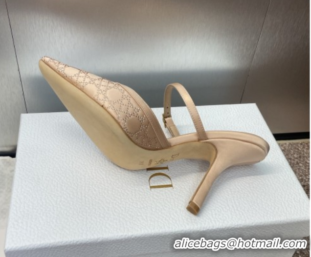 Popular Style Dior Capture Strap Mules 9.5cm in Satin with Strass Cannage Motif Nude 0822082