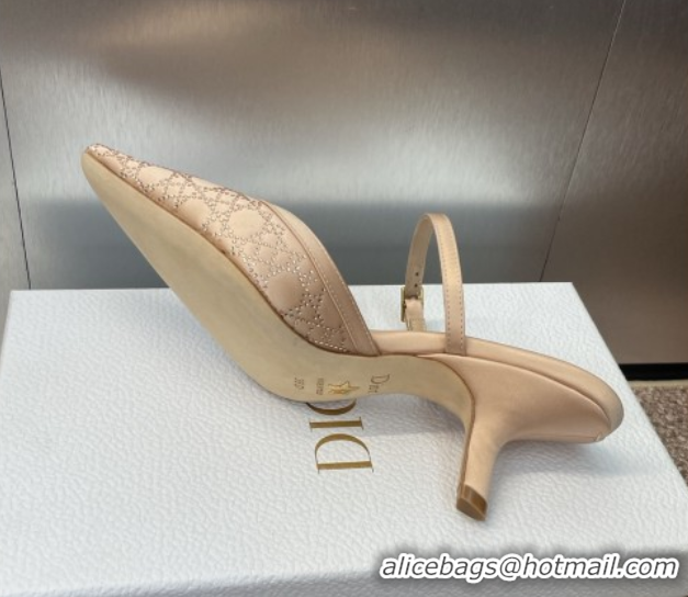 Big Discount Dior Capture Strap Mules 6.5cm in Satin with Strass Cannage Motif Nude 0822084