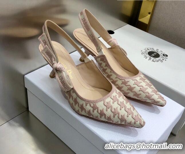 Best Luxury Dior J'Adior Slingback Pumps 6.5cm in Cotton Embroidery with Micro Houndstooth Light Pink 121538