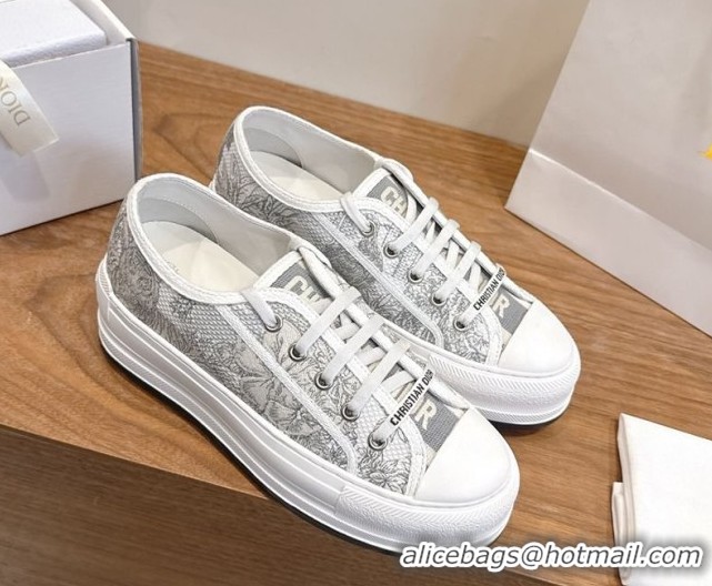 Perfect Dior Walk'n'Dior Platform Sneakers 4.5cm in Embroidered Cotton Grey 2026 0303020