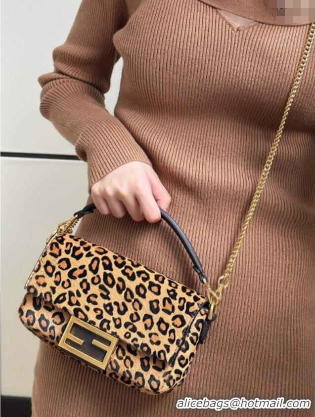 Best Price Fendi Baguette Mini Bag in Leopard Printed Mohair 8691S 2025