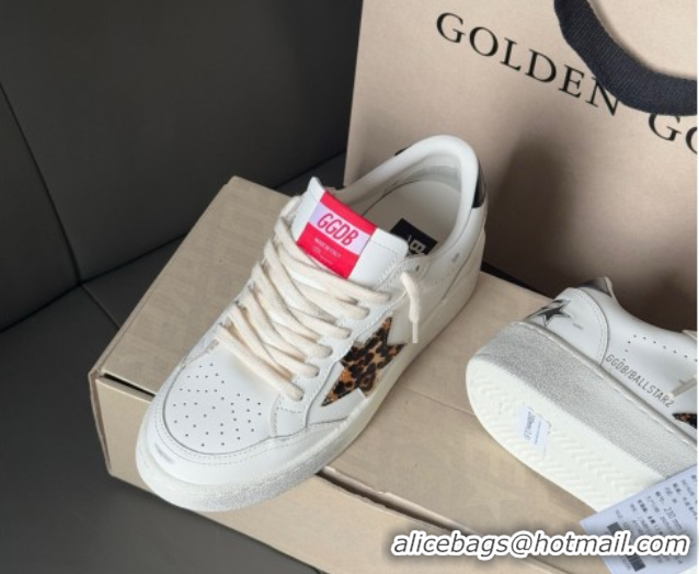 Best Grade Golden Goose Ball Star with leopard pony skin star and black laminated leather heel tab White 0902092