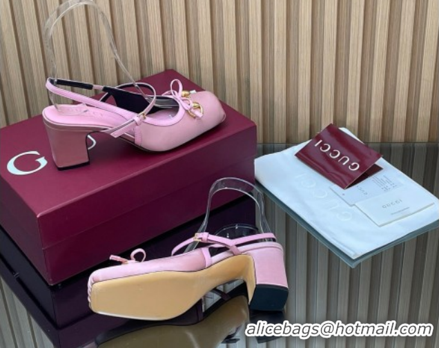 Best Price Gucci Horsebit Slingback Pumps 6.5cm in Satin 850327 Pink 2026