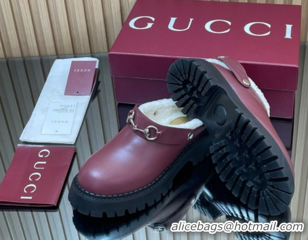 Discount Gucci Leather and Wool Mule with Horsebit 835829 Red 1020047