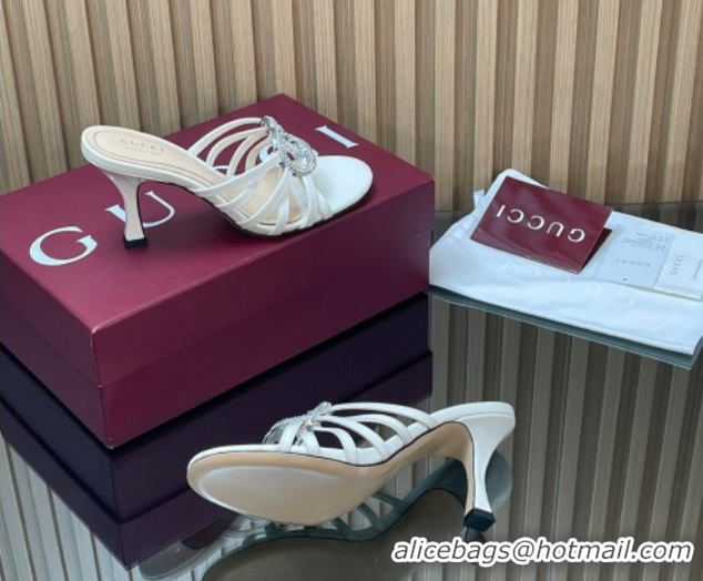 Purchase Gucci Patent Leather Heel Slides Sandal 8.5cm with Strass Interlocking G 852663 White 2026