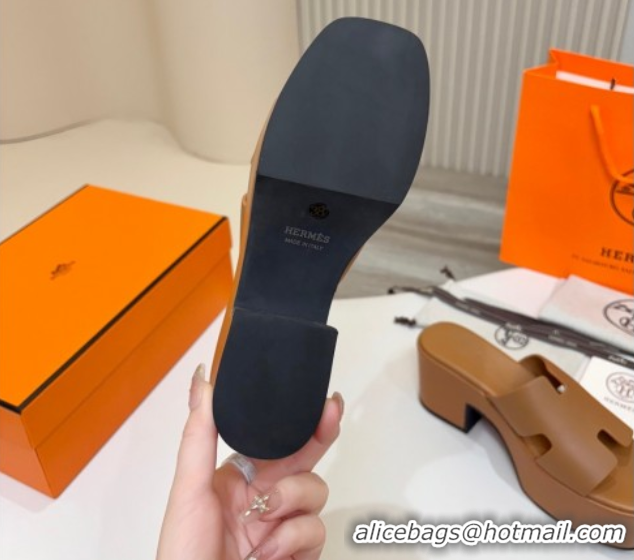 Best Price Hermes Calfskin Platform Slides Sandal 7.5cm Brown 2025 H082003 0820021