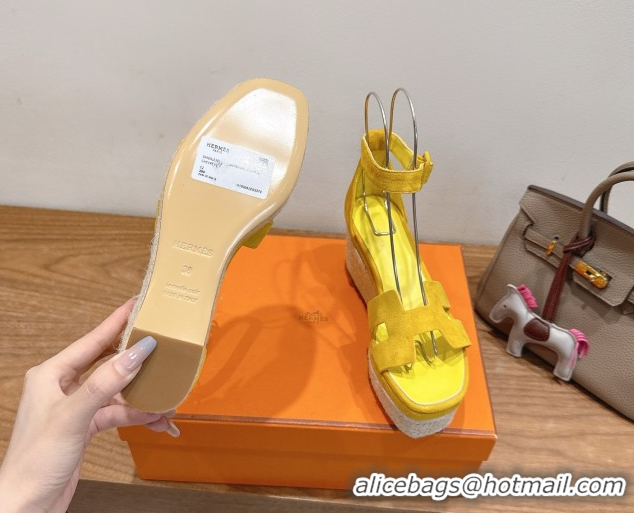 Your Position: Home > Shoes Plaza > Hermes Shoes > Best Price Hermes Elda Platform Wedge Sandals 8cm in Suede Yellow 2025 H082010 0820121
