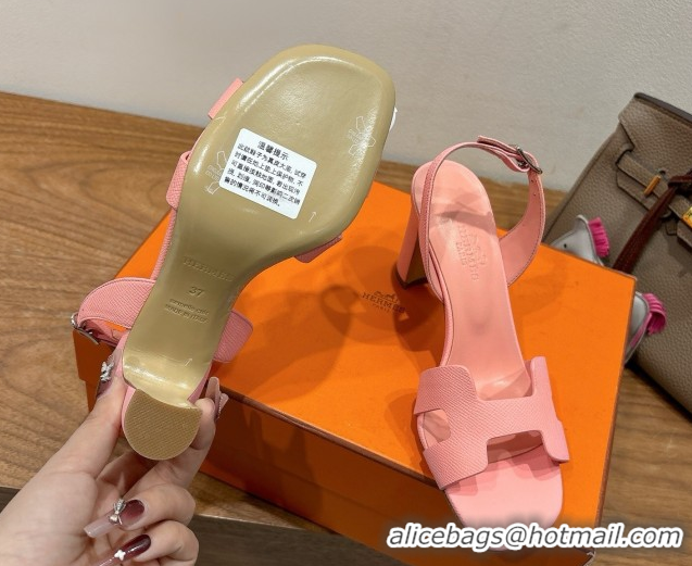Best Price Hermes Eremite Heel Sandals 8cm in Grained Leather Light Pink H02275 0820147