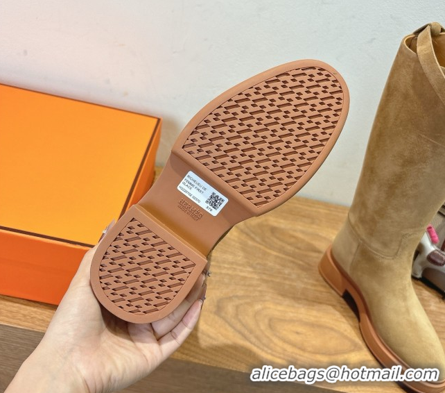 Best Price Hermes High Platform Boots in Suede with Kelly Strap Beige H102301 1023061