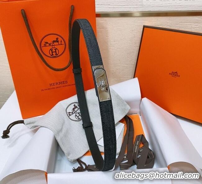 Best Price Hermes Kelly Jean Belt 1.8cm in Denim and Epsom Leather 0314 Black/Silver 2025