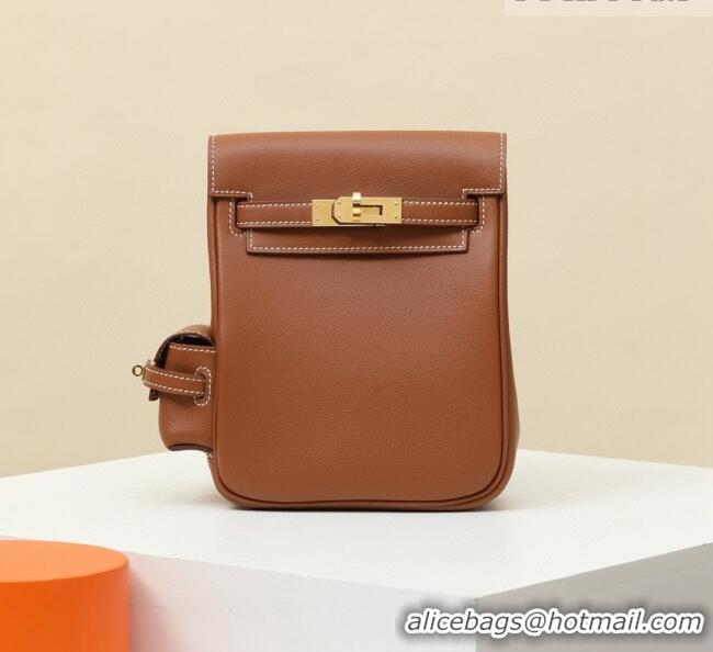 > Hermes Handbag > Kelly Backpack/Messenger > Best Price Hermes Kelly Jump Backpack KJ18 18cm in Swift Leather H2112 Brown/Gold 2026 (Half Handmade)