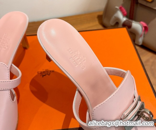 Best Price Hermes Kelly Strap Medium Heel Slides Sandal in Calfskin Leather Light Pink HS122201 2026