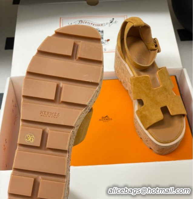 Stylish Hermes Luce Wedge Platform Sandals 7cm in Suede Yellow H252131 2026