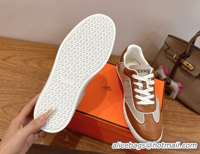Good Looking Hermes Match Sneakers in Canvas and Calfskin Leather Grey/Brown 2026 H261863