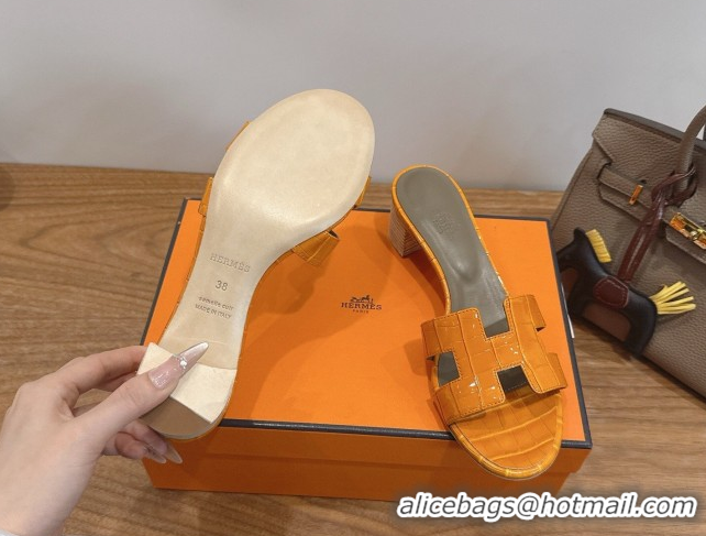 Good Product Hermes Oasis Classic Heel Slides Sandal 4.5cm in Crocodile Embossed Leather Orange Yellow 0304039