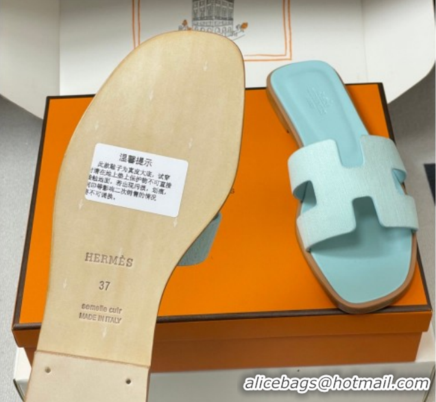 > Shoes Plaza > Hermes Shoes > Best Grade Hermes Oran Classic Flat Slides Sandal in Jacquard Fabric Light Green 0304097 2026