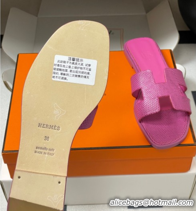 Best Price Hermes Oran Classic Flat Slides Sandal in Lizard Embossed Calfskin Hot Pink 2025 H081803