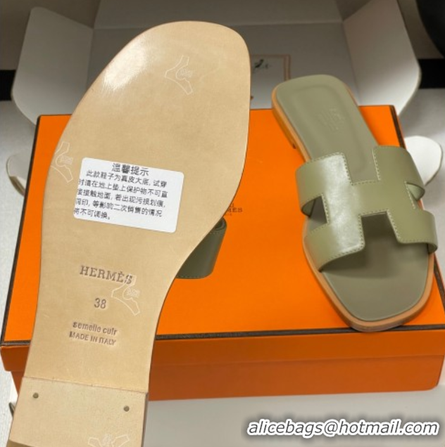 Best Price Hermes Oran Classic Flat Slides Sandal in Smooth Calfskin Khaki 2025 H081803