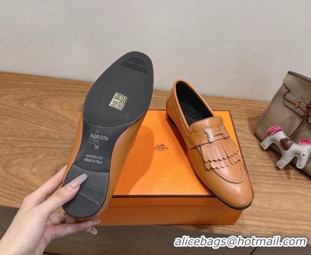 Best Price Hermes Royal Loafers in Calfskin Leather with Fringe Brown2 2025 H082006 0820055