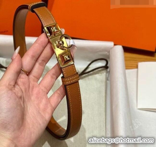 Best Price Hermes Women's Rivale Belt 1.8cm with Two Medor Studs and Ring Buckle H5022 Brown/Gold 2025