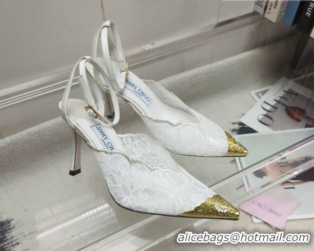 Best Price Jimmy Choo Faiz Lace Pumps 9cm with Metal Detail White 60206100 2026